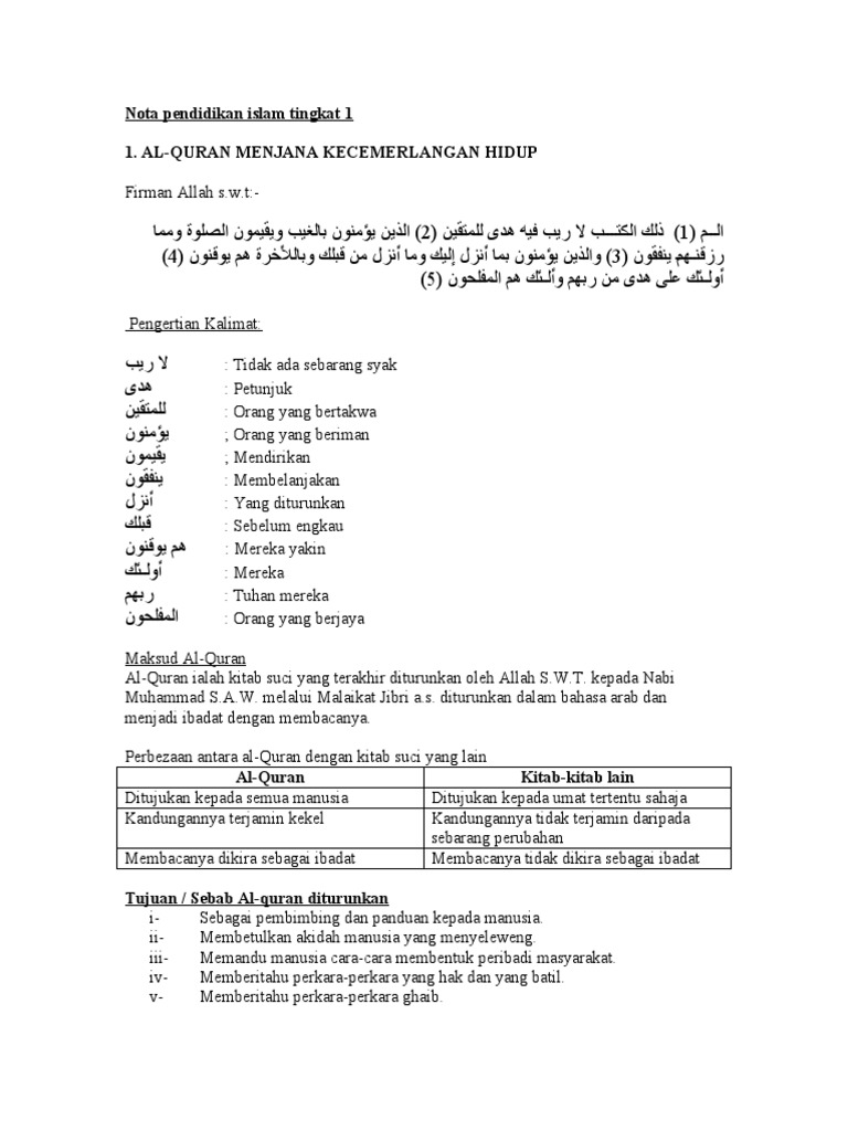 Nota Pendidikan Islam Tingkatan 1 Pdf